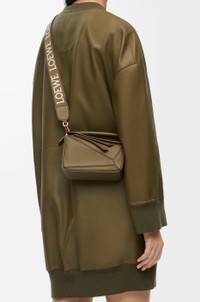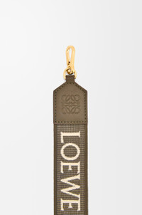 Detachable strap crafted in calfskin and jacquard with a LOEWE pattern on one side and an Anagram pattern on the reverse. - 4cm wide - Hook fastenings - Detachable and adjustable - Embossed Anagram Details - Colour: Dark Khaki Green - Metallic colour: Gold - Main material: Jacquard/Calf - Strap length: 65 - 105 cm - Weight: 0.13 kg - Height (cm): 0.2 - Width (cm): 105 - Depth (cm): 4 - Height (inch): 0.1 - Width (inch): 41.3 - Depth (inch): 1.6 - Model ID: C073T87X01 - CIL: 0010896918 - Made in: Spain