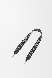 Detachable strap crafted in calfskin and jacquard with a LOEWE pattern on one side and an Anagram pattern on the reverse. - 4cm wide - Hook fastenings - Detachable and adjustable - Embossed Anagram Details - Colour: Black - Metallic colour: Palladium - Main material: Jacquard/Calf - Strap length: 65 - 105 cm - Weight: 0.13 kg - Width (cm): 105 - Depth (cm): 4 - Width (inch): 41.3 - Depth (inch): 1.6 - Model ID: C073T87X01 - CIL: 0010896850 - Made in: Spain