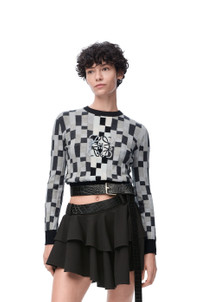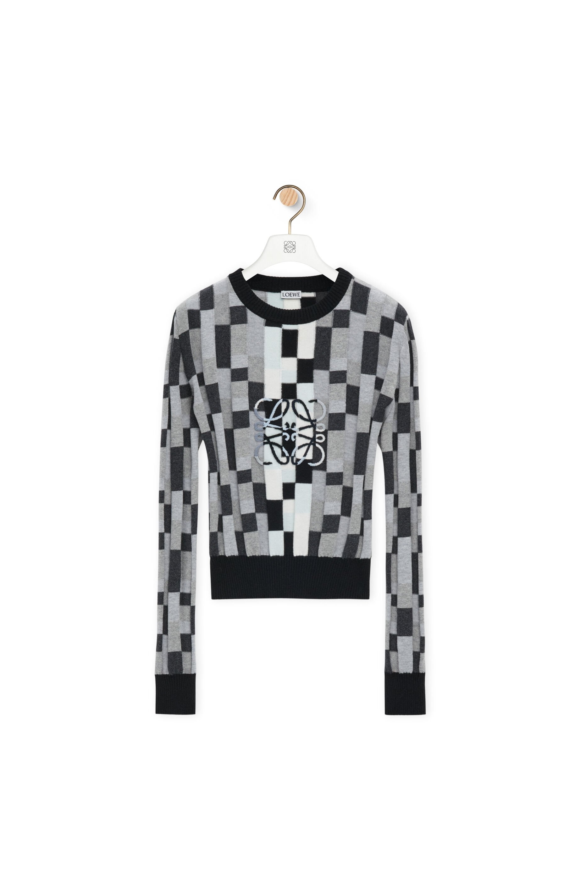 Sweater in lightweight cotton featuring an intarsia geometric pattern and a tufting Anagram embroidery at the front. - Slim fit, short length - Jersey stitch - Crew neck - Ribbed collar, cuffs and hem Details - Colour : Grey/Light Grey - Main material : Cotton - Weight : 0.19 kg - Model ID : S359Y14KGR - Made in : Italy