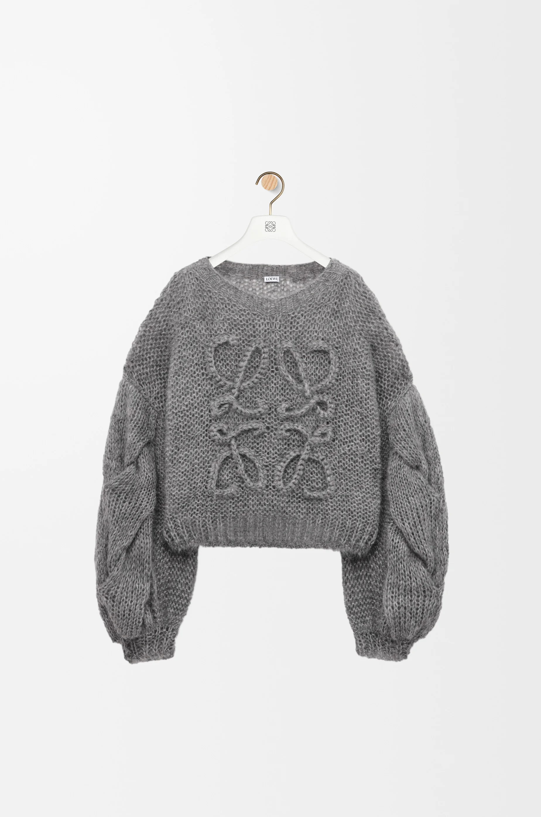 Anagram sweater crafted in medium-weight mohair blend. - Loose open stitch - Relaxed fit - Regular length - Hand-finished Anagram appliqué at the front - Dropped shoulders - Puffy sleeves with cable details - Ribbed cuffs and hem Details - Colour: Grey Melange - Main material: Mohair/Polyamide - Weight: 0.5 kg - Model ID: S359Y14KBO - Made in: Italy