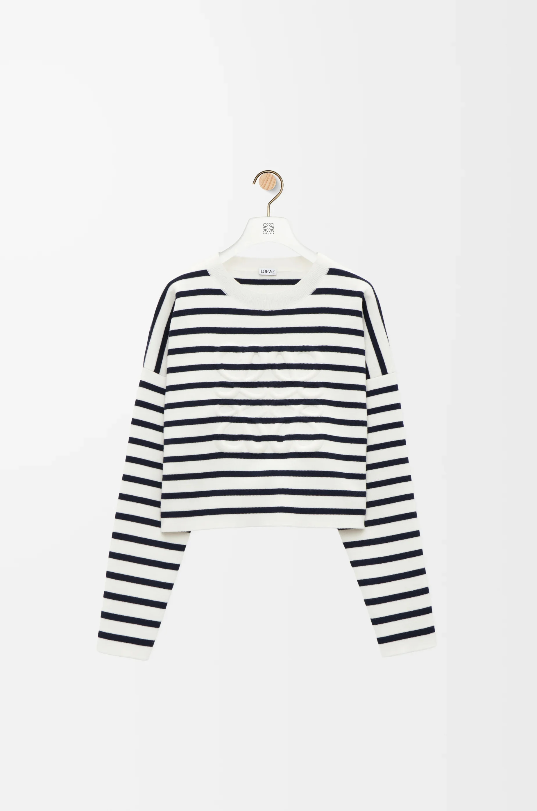 Sweater crafted in medium-weight compact wool knit. - Double face striped jacquard stitch - Relaxed fit - Cropped length - Padded 3D Anagram at the front - Round neck - Ribbed collar - Self-start cuffs and hem Details - Colour: Off-white/Navy - Main material: Wool - Weight: 0.4 kg - Model ID: S359Y14KF4 - Made in: Italy