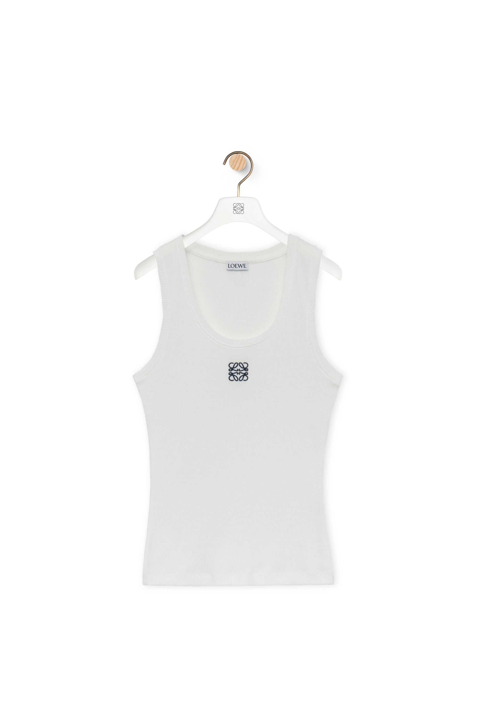 Top crafted in lightweight stretch ribbed cotton jersey. - Slim fit - Regular length - Scoop neck - Anagram embroidery placed at the front Details - Colour: White - Main material: Cotton/Elastan - Weight: 0.059 kg - Model ID: S359Y23X84 - Made in: Portugal