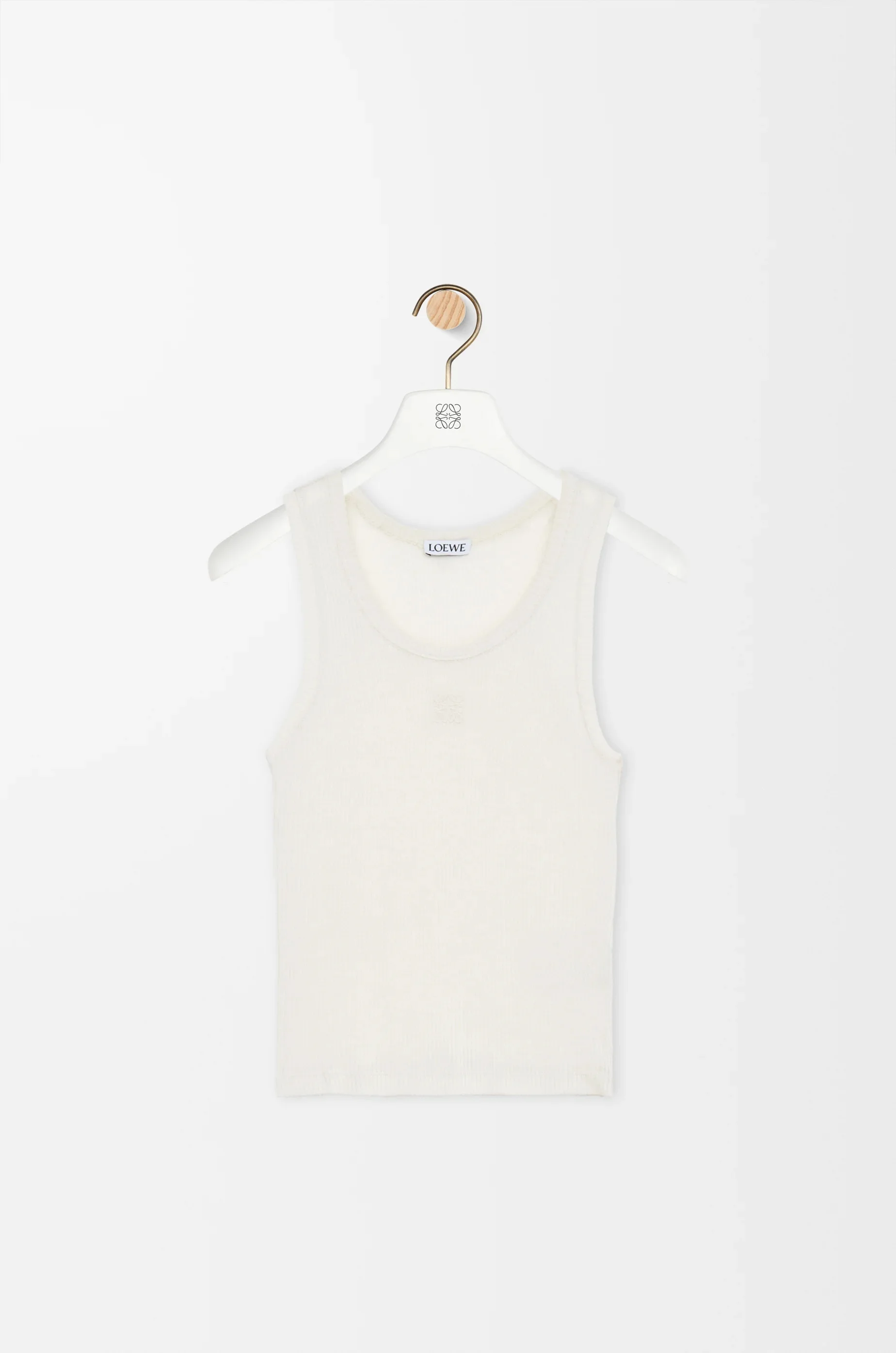 Top in lightweight ribbed silk. - Slim fit, regular length - Scoop neck - Anagram embroidery placed at the front Details - Colour : Soft White - Main material : Silk - Weight : 0.1 kg - Model ID : S540Y23X46 - Made in : Portugal