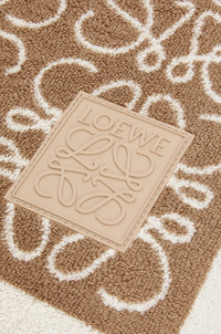 Towel in cotton with an all-over repeat Anagram pattern. - LOEWE Anagram silicon patch - 95cm x 170cm Details - Colour: Beige - Main material: Cotton - Weight: 1.021 kg - Height (cm): 185 - Width (cm): 95 - Height (inch): 72.8 - Width (inch): 37.4 - Model ID: K000229X14 - CIL: 0010861300 - Made in: Italy