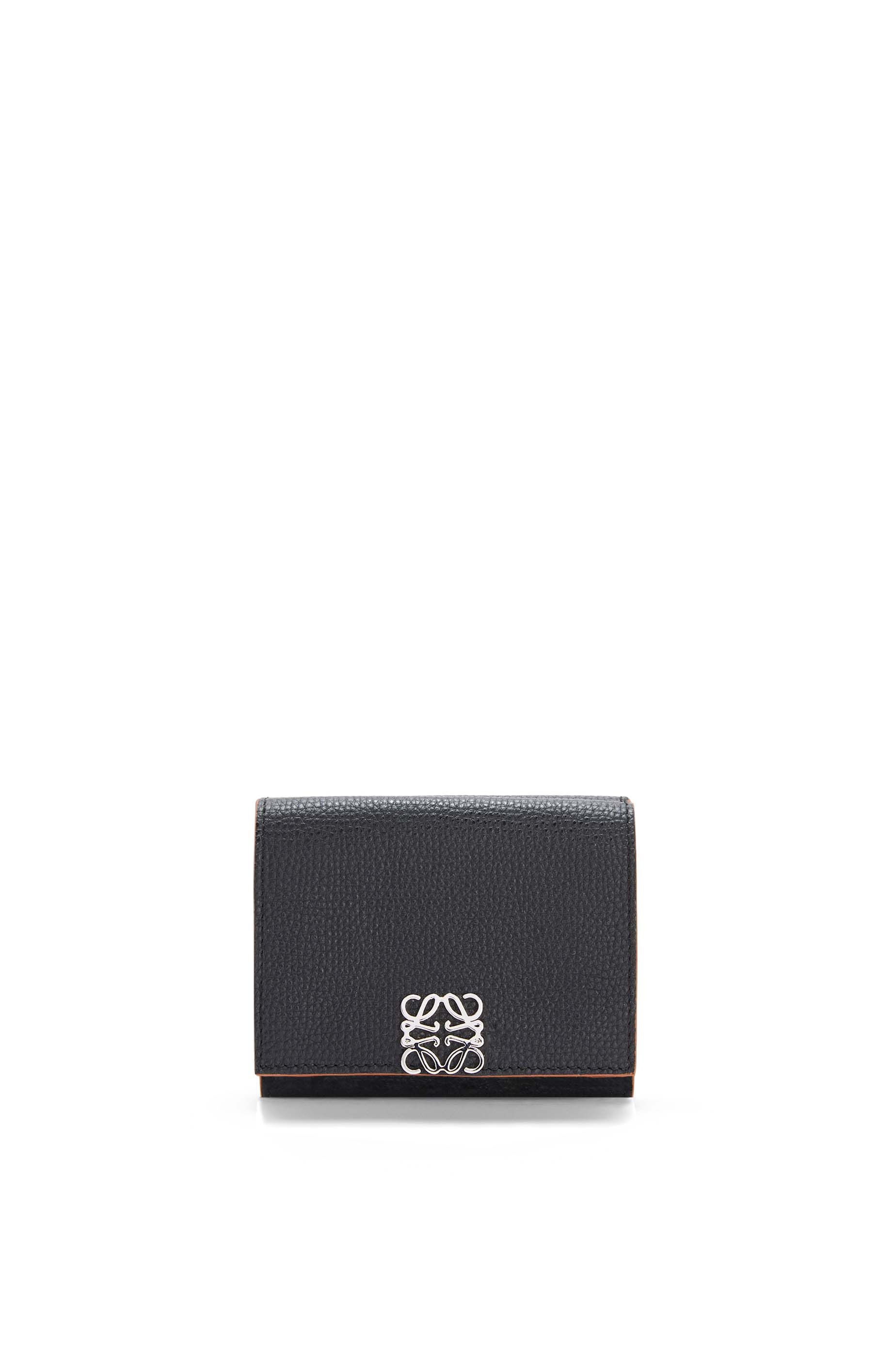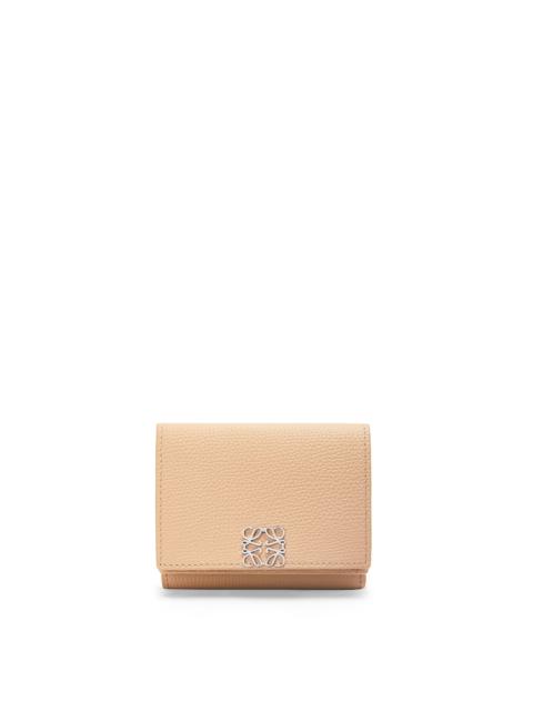 Anagram trifold wallet in pebble grain calfskin