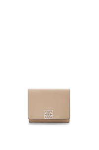 Anagram trifold wallet in pebble grain calfskin