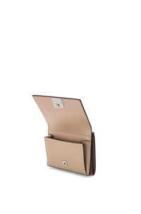 Trifold wallet in pebble grain calfskin. - Six card slots and larger pocket - Coin compartment - Calfskin lining - Anagram snap button closure Details - Colour: Sand - Metallic colour: Palladium - Main material: Pebble Grain Calf - Weight: 0.1 kg - Height (cm): 7.8 - Width (cm): 10.2 - Depth (cm): 3.8 - Height (inch): 3.1 - Width (inch): 4 - Depth (inch): 1.5 - Model ID: C821TR2X02 - CIL: 0010593861 - Made in: Spain