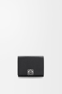 Trifold wallet in pebble grained calfskin. - Six card slots, one large pocket, one coin compartment - Snap button closure - Calfskin lining - Silver-finish metal Anagram Details - Colour : Black - Metallic colour : Palladium - Main material : Pebble Grain Calf - Weight : 0.1 kg - Height (cm) : 7.8 - Width (cm) : 10.2 - Depth (cm) : 3.8 - Height (inch) : 3.1 - Width (inch) : 4 - Depth (inch) : 1.5 - Model ID : C821TR2X16 - CIL : - 0011191210 - Made in : Spain
