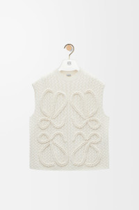 Vest in medium-weight wool featuring a hand-stitched braided Anagram at the front. - Relaxed fit, regular length - Cable stitch - Ribbed round neck Details - Colour : White - Main material : Wool - Weight : 0.7 kg - Model ID : S359Y14KE4 - Made in : Italy