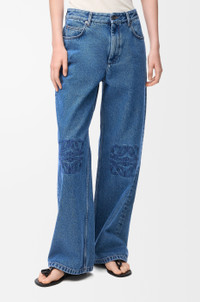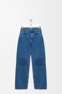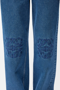 Jeans in medium-weight washed cotton denim featuring Anagram embroideries at the knees. - Relaxed fit, regular length - Mid waist, loose leg - Concealed zip fly - Slash pockets, rear patch pockets - LOEWE embossed leather patch placed at the back Colour: Jeans Blue Main material: Cotton Weight: 0.7 kg Made in: Italy Materials & care Main Material: 100% cotton