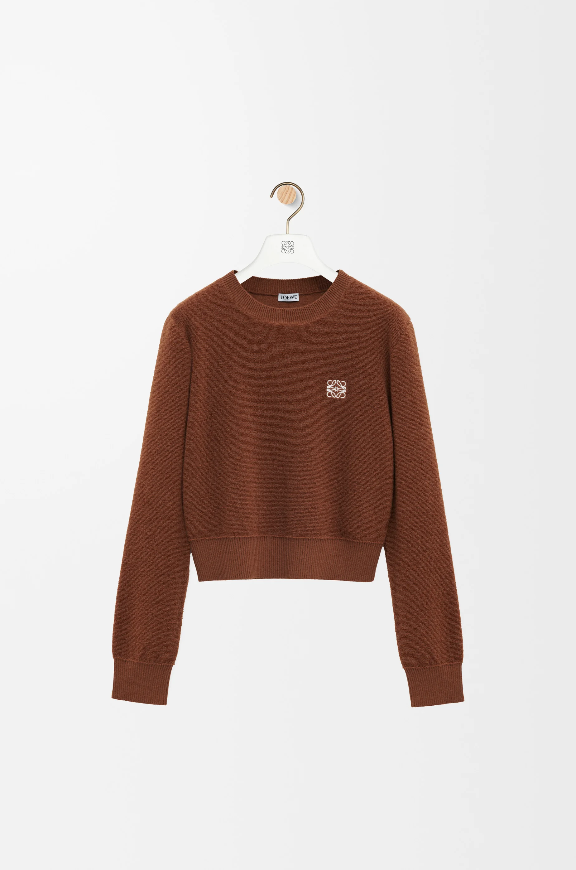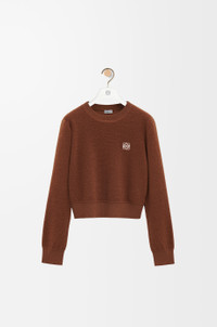 Sweater in medium-weight wool Merino. - Regular fit, short length - Crew neck - Ribbed collar, cuffs and hem - Contrast Anagram embroidery placed on the chest Details - Colour : Brown - Main material : Wool - Weight : 0.45 kg - Model ID : S359Y14KGJ - Made in : Italy