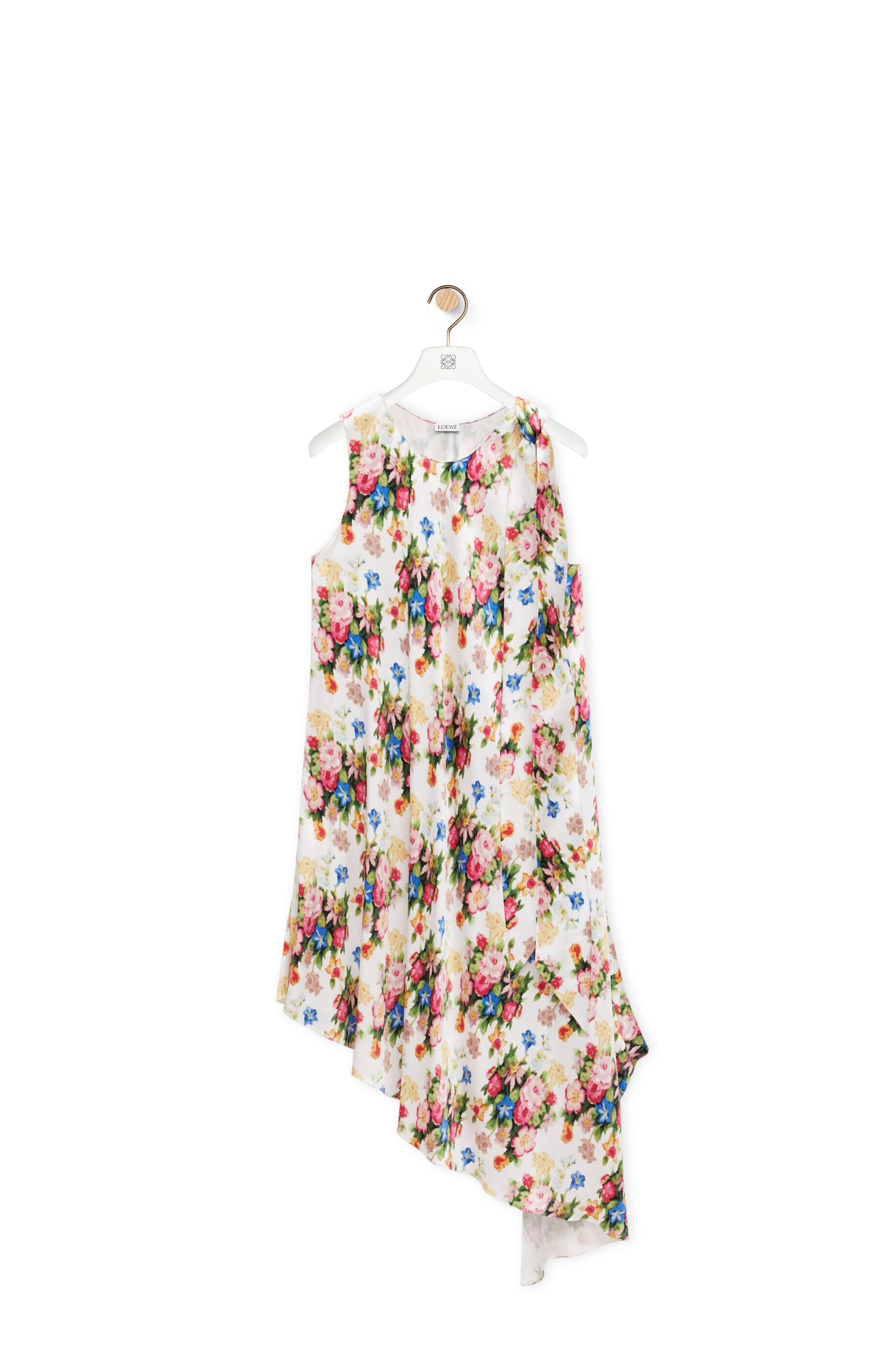 Dress crafted in medium-weight double silk satin. - Relaxed fit - Knee length - Asymmetric silhouette - Placed floral bouquet print - Round neck - Knotted scarf detail on the shoulder Details - Colour : Multicolor/Soft Pink - Main material : Silk - Weight : 0.3 kg - Model ID : S540Y09XQR - Made in : Spain