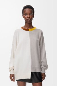 Sweater in medium-weight wool featuring an asymmetric silhouette with a two-tone collar and body. - Relaxed fit, long length - Round neck - Ribbed collar, cuffs and hem - Anagram embroidery placed on the chest Colour: Mustard/Bronze Main material: Wool Weight: 0.4 kg Made in: Italy Materials & care Main Material: 97% wool 2% polyamide 1% elastane