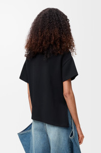 T-shirt crafted in lightweight compact cotton blend jersey. - Relaxed fit - Regular length - Boxy silhouette - Crew neck - Asymmetric hem diagonal cut-out - Anagram embroidery placed at the front Details - Colour : Black - Main material : Cotton/Polyamide - Weight : 0.26 kg - Model ID : S540Y22X59 - Made in : Portugal