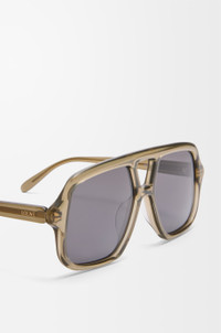 Aviator-shaped sunglasses in a slim acetate construction. - Universal fit - UVA/UVB protection - Gold-finish metal LOEWE Colour: Khaki Green Main material: Acetate Weight: 0.037 kg Height: 5.84 cm Width: 14.35 cm Depth: 3.8 cm Made in: Italy