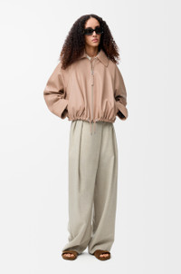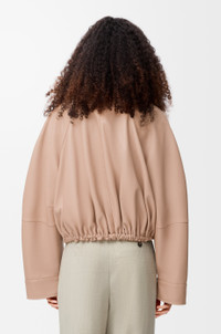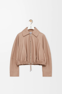 Jacket in lightweight nappa lambskin featuring a balloon silhouette with an adjustable drawstring hem. - Relaxed fit, regular length - Classic collar - Zip front fastening with a leather puller - Welt pockets - Fully lined - LOEWE Anagram embossed patch placed at the back Colour: Beige Main material: Nappa Weight: 1.3 kg Made in: Spain Materials & care Main Material: 100% lambskin