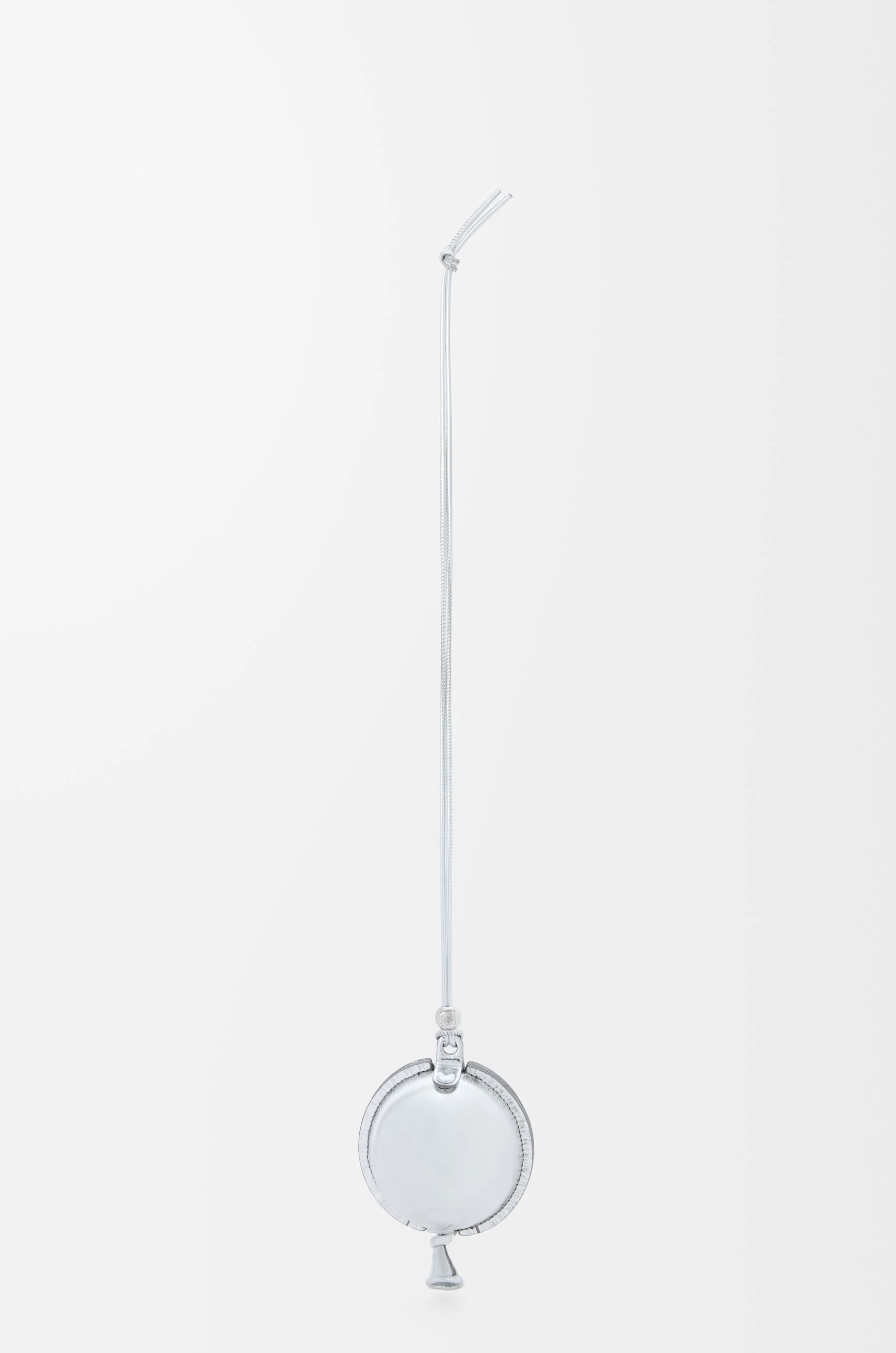 Pouch in nappa calfskin with a silver patent finish featuring a tubular calfskin strap and an Anagram Pebble. - Snap button closure - Calfskin lining Colour: Silver Metallic colour: Palladium Main material: Nappa Weight: 0.06 kg Width: 55 cm Depth: 10 cm Made in: Spain