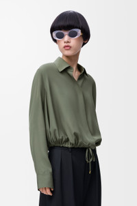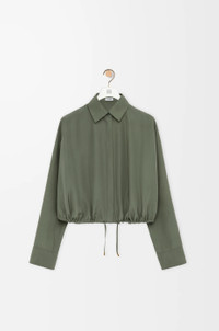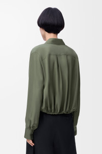Shirt in lightweight matte silk crepe featuring a balloon silhouette with a front adjustable drawstring hem. - Relaxed fit, regular length - Classic collar - Concealed button front fastening, buttoned cuffs - Anagram embroidery placed at the cuff Colour: Khaki Green Main material: Silk Weight: 0.2 kg Made in: Italy Materials & care Main Material: 100% silk