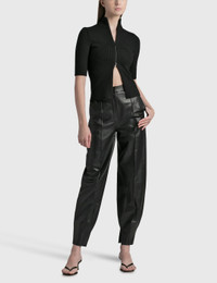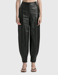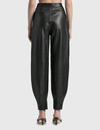 - Loewe - Balloon Trousers - Shiny nappa leather exterior - High rise - Zip fly - Two side pockets; one rear welt pocket - Balloon silhouette with a tapered, split cuff - Color: Black - Material: 100% Leather - See more Pants and Clothing SIZING - Model wears size 34 - Model measures: Height 181cm, Chest 33”/84cm, Waist 24”/61cm, Hip 35”/90cm