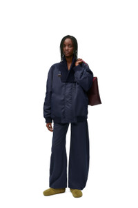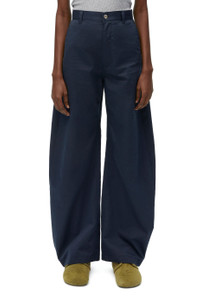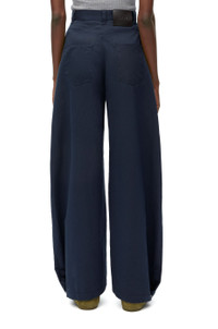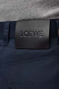 Adjusted fit trousers crafted in lightweight cotton silk gabardine. - Regular fit - Regular length - Side length: 103.5 cm (size 36) - Mid waist - Loose leg - Balloon silhouette - Adjustable snaps at the hem - Belt loops - Concealed zip fastening - Slash pockets - Rear patch pockets - LOEWE leather patch placed at the back Details - Colour: Midnight Blue - Main material: Cotton/Silk - Weight: 0.7 kg - Model ID: S359Y04XEV - Made in: Italy