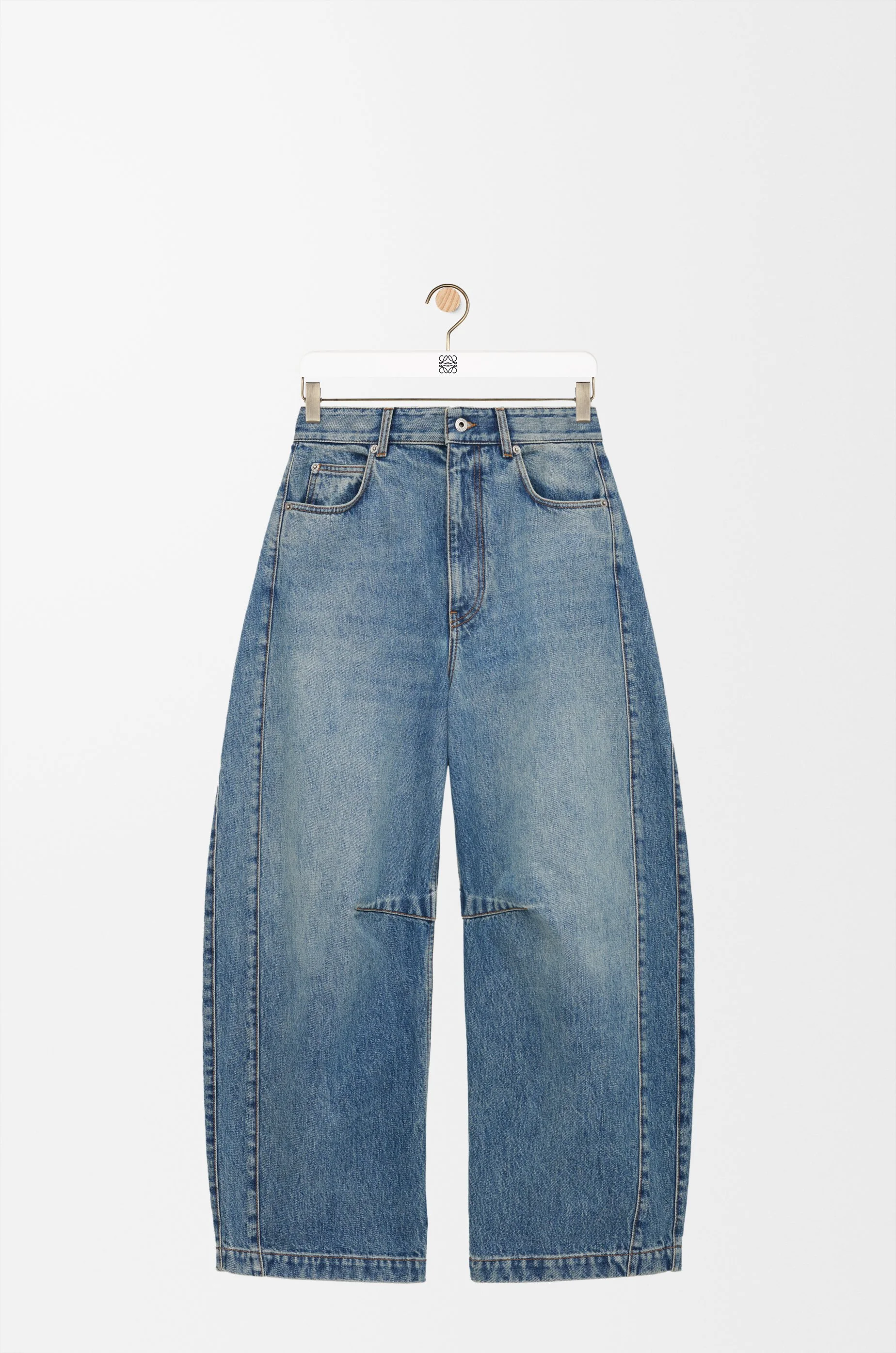Jeans in medium-weight washed cotton denim featuring a balloon silhouette and Anagram embroideries with topstitching detailing at the back and dart at the knees. - Regular fit, regular length - Mid waist, loose leg - Concealed zip fastening - Five pocket style - LOEWE embossed leather patch placed at the back Colour: Washed Denim Main material: Cotton Weight: 1.0 kg Made in: Italy Materials & care Main Material: 100% cotton