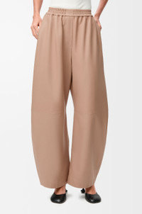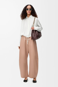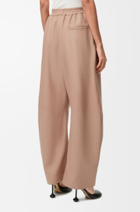 Trousers in lightweight nappa lambskin featuring a barrel silhouette. - Regular fit, regular length - Mid waist, loose leg - Elasticated waist - Rear welt pocket - Partially lined - Anagram embroidery placed at the waist Colour: Beige Main material: Nappa Weight: 0.9 kg Made in: Spain Materials & care Main Material: 100% lambskin