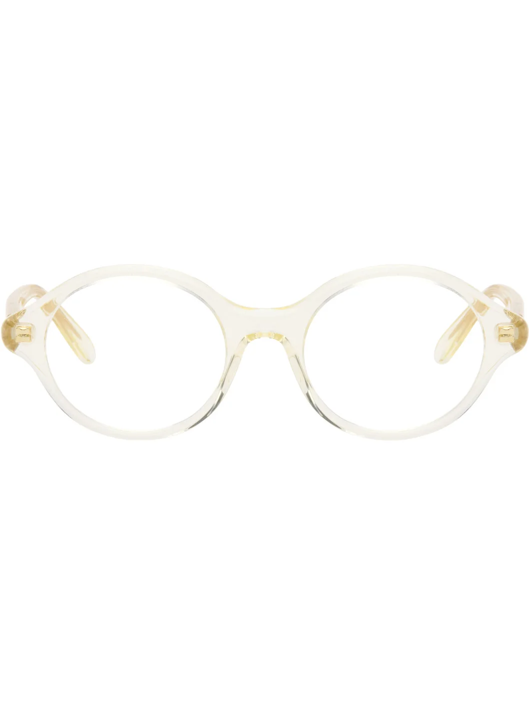 Round transparent acetate-frame optical glasses. · Integrated nose pads · Inset logo at temples · Exposed core wires · Gold-tone hardware · Includes pouch · Size: 50.20 140 Supplier color: Shiny beige Acetate. Made in Italy 252677F004002