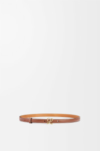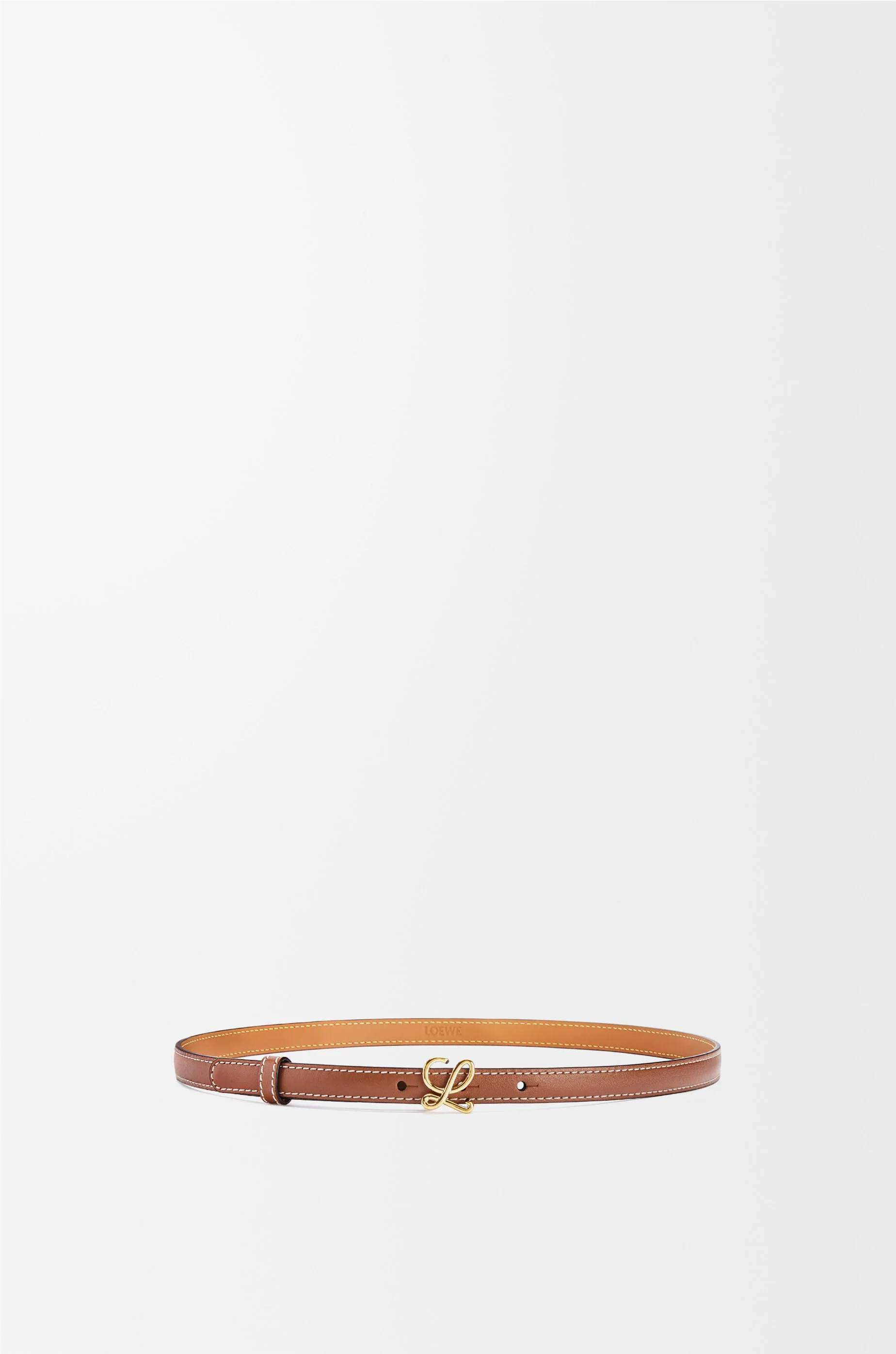 Narrow belt with contrast stitching and an L monogram buckle. - 1.5cm wide - Gold buckle - Five holes regulation Details - Colour: Tan/Gold - Metallic colour: Gold - Main material: Smooth Calf/Brass - Weight: 0.04 kg - Height (cm): 1.5 - Width (cm): 87.5 - Depth (cm): 0.2 - Height (inch): 0.6 - Width (inch): 34.4 - Depth (inch): 0.1 - Model ID: E821238X01 - Made in: Spain