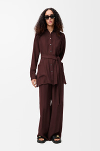 Blouse in lightweight matte silk crepe featuring a self-tie belt at the waist and donut chain cuff links. - Relaxed fit, long length - Classic collar - Button front fastening - Chest patch pocket - Anagram embroidery placed on the belt Colour: Burgundy Main material: Silk Weight: 0.25 kg Made in: Italy Materials & care Main Material: 100% silk
