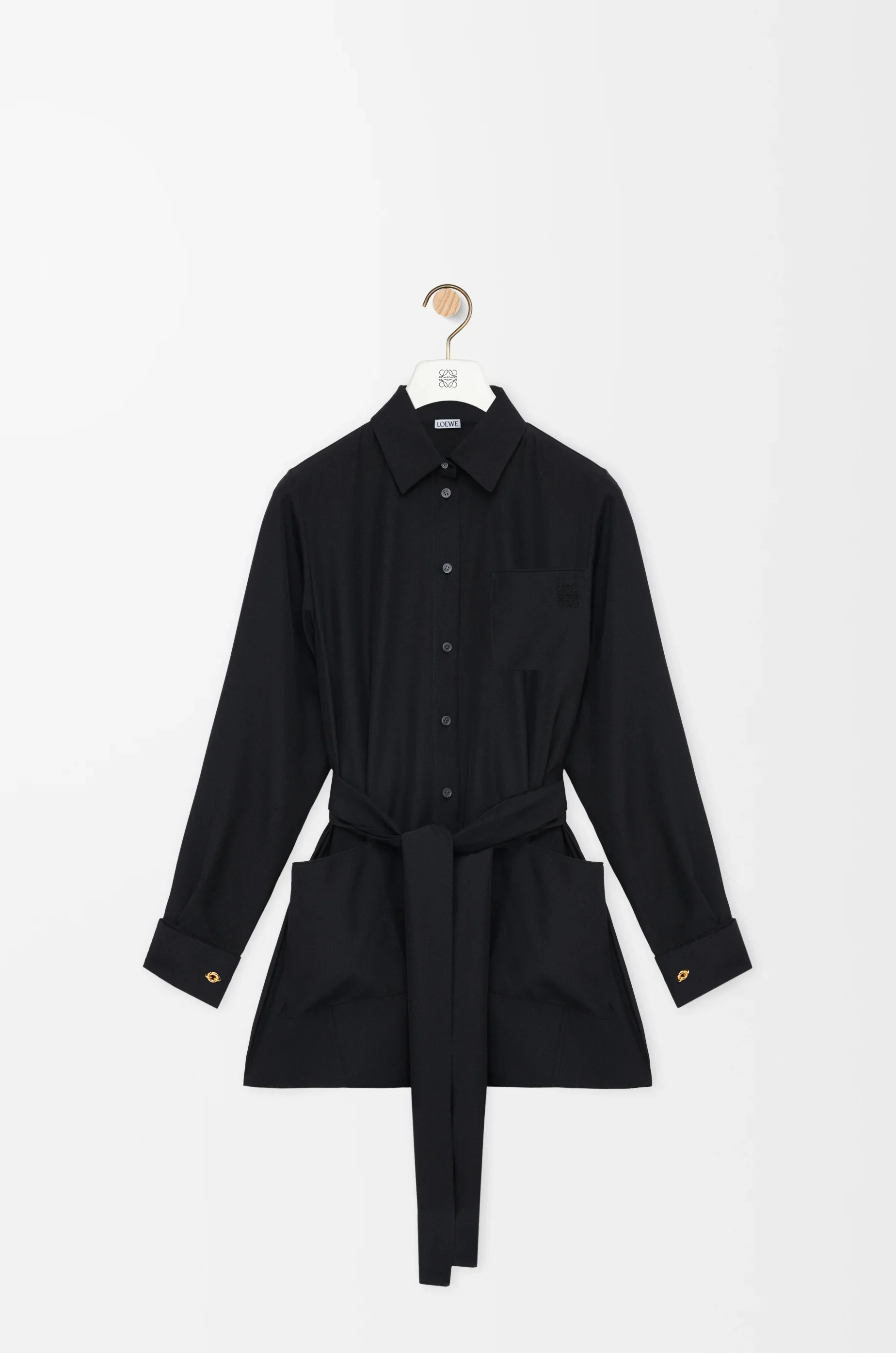 Blouse in lightweight matte silk crepe featuring a self-tie belt at the waist and donut chain cuff links. - Relaxed fit, long length - Classic collar - Button front fastening - Chest patch pocket - Anagram embroidery placed on the belt Colour: Black Main material: Silk Weight: 0.25 kg Made in: Italy Materials & care Main Material: 100% silk
