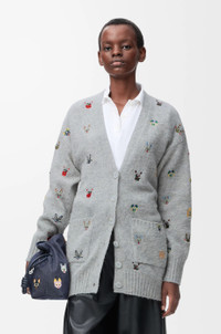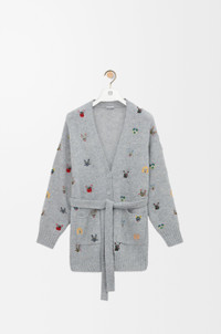 Cardigan in medium-weight brushed wool featuring allover placed Futurist cat embroideries on the front and sleeves, and a self-tie belt at the waist. This cardigan is inspired by Louis Wain's "Futurist Cats" porcelain vase series. - Relaxed fit, long length - Button front fastening - Ribbed cuffs and hem - Patch pockets - Anagram embroidery placed on the pocket Colour: Grey/Multicolor Main material: Wool Weight: 0.16 kg Made in: Italy Materials & care Main Material: 99% wool 1% polyamide