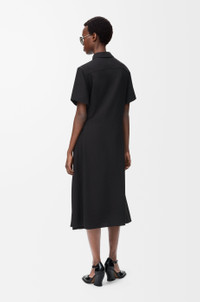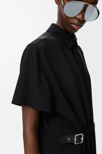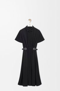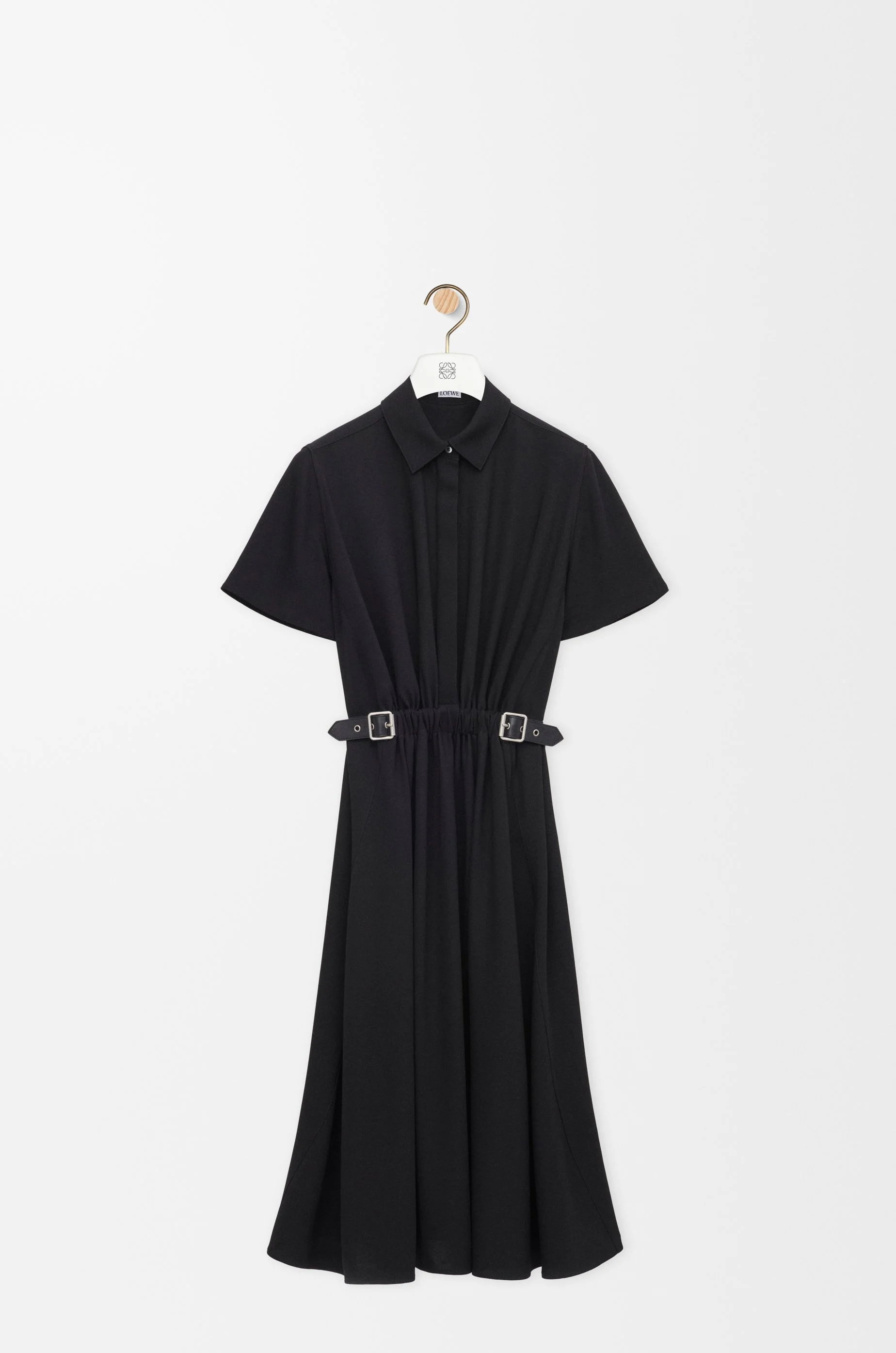 Dress in lightweight fluid viscose stretch cady featuring a gathered front with a leather belt detail. - Regular fit, knee length - Classic collar - Concealed button front fastening - Knife pleats at the back - Anagram embroidery placed at the back Colour: Black Main material: Viscose/Elastan Weight: 0.6 kg Made in: Italy Materials & care Main Material: 96% viscose 4% elastane