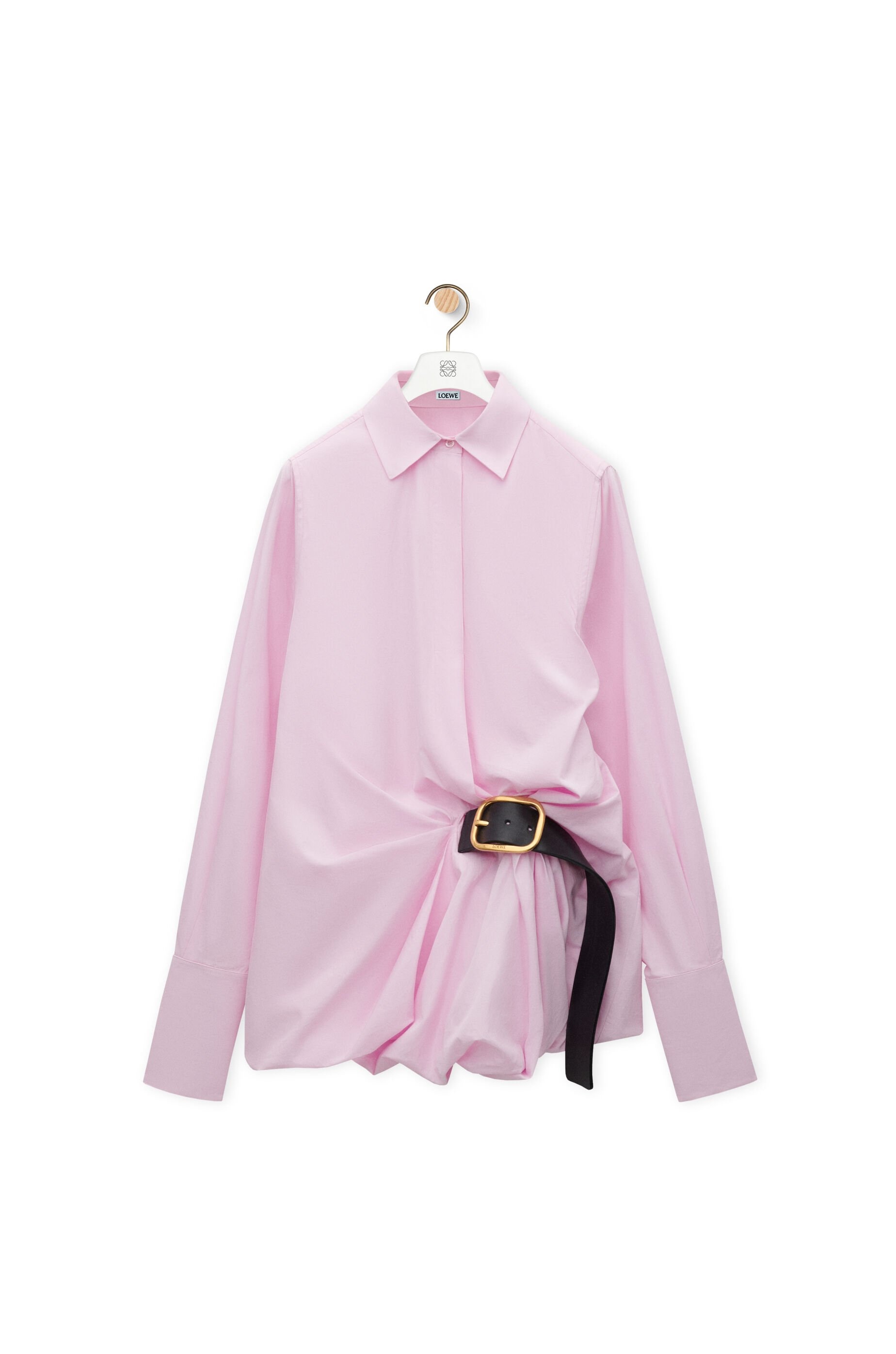 Shirt crafted in lightweight cotton poplin. - Relaxed fit - Regular length - Asymmetric spin draping at the front - Classic collar - Buttoned French cuffs - Concealed button front fastening - Elasticated fabric belt with leather detail - Puffed hem - LOEWE engraved buckle Details - Colour : Pink - Main material : Coton - Weight : 0.25 kg - Model ID : S540Y05XAE - Made in : Italy