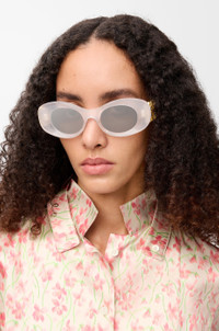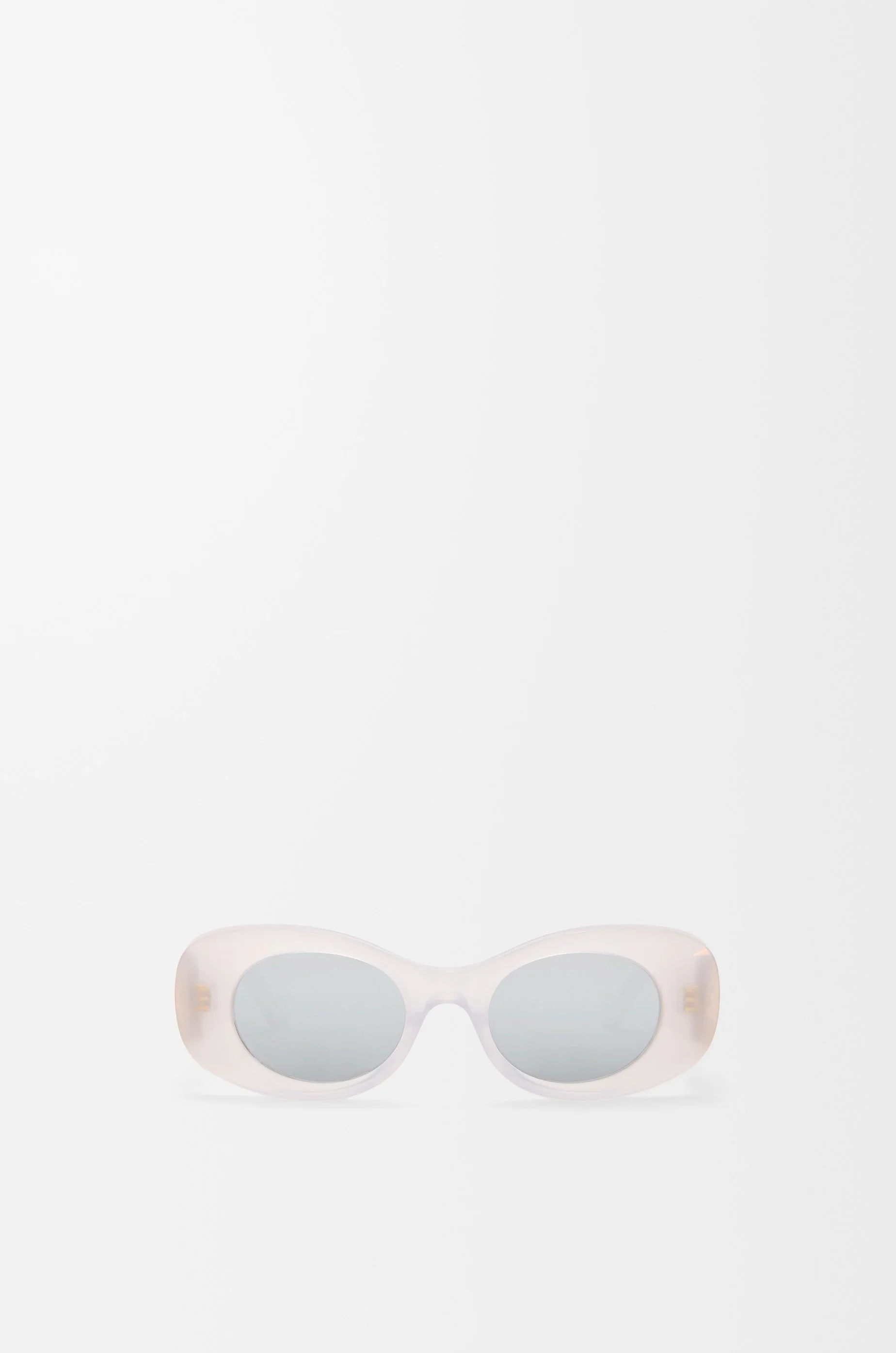 Oval-shaped sunglasses in a beveled acetate construction. - Universal fit - UVA/UVB protection - Gold-finish metal Anagram Colour: White Main material: Acetate Weight: 0.039 kg Made in: Italy