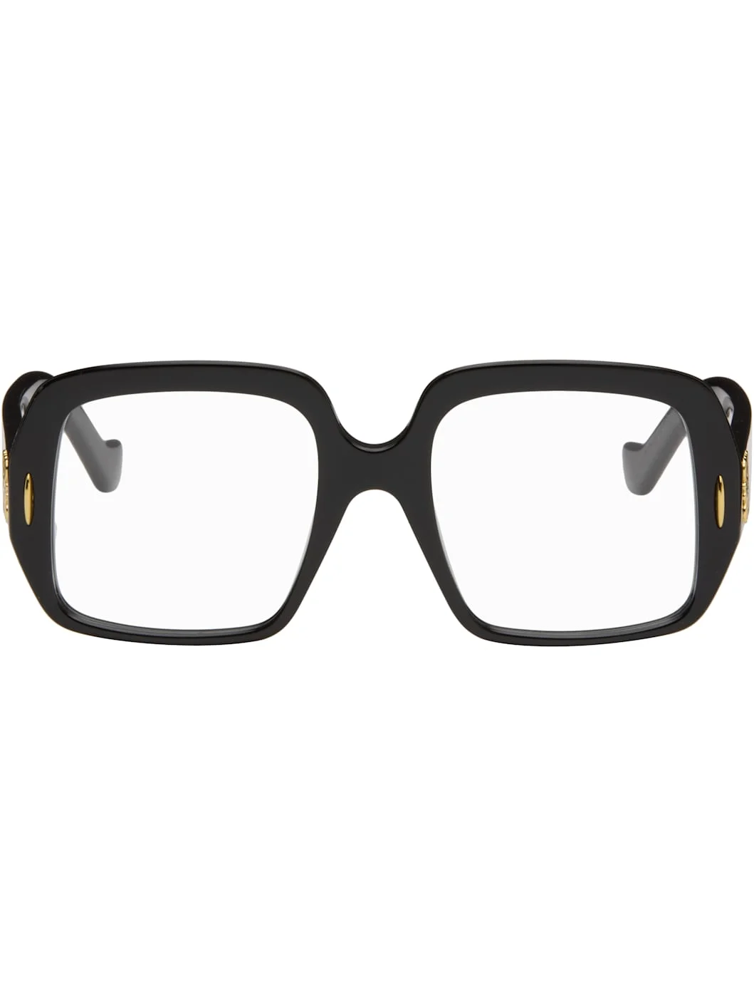 Square acetate-frame optical glasses. · Integrated nose pads · Logo graphic hardware at temples · Includes case · Size: 52.20 140 Supplier color: Shiny black Acetate. Made in Italy 252677F004049