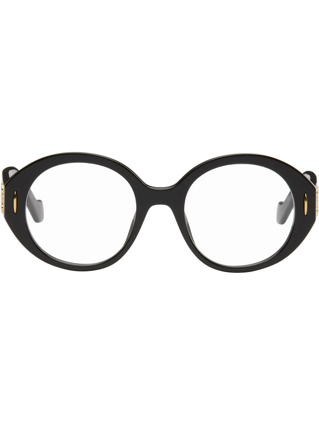 Oval acetate-frame optical glasses. · Integrated nose pads · Hardware at face · Logo hardware at temples · Gold-tone hardware · Includes pouch · Size: 51.20 140 Supplier color: Shiny black Acetate. Made in Italy 252677F004008