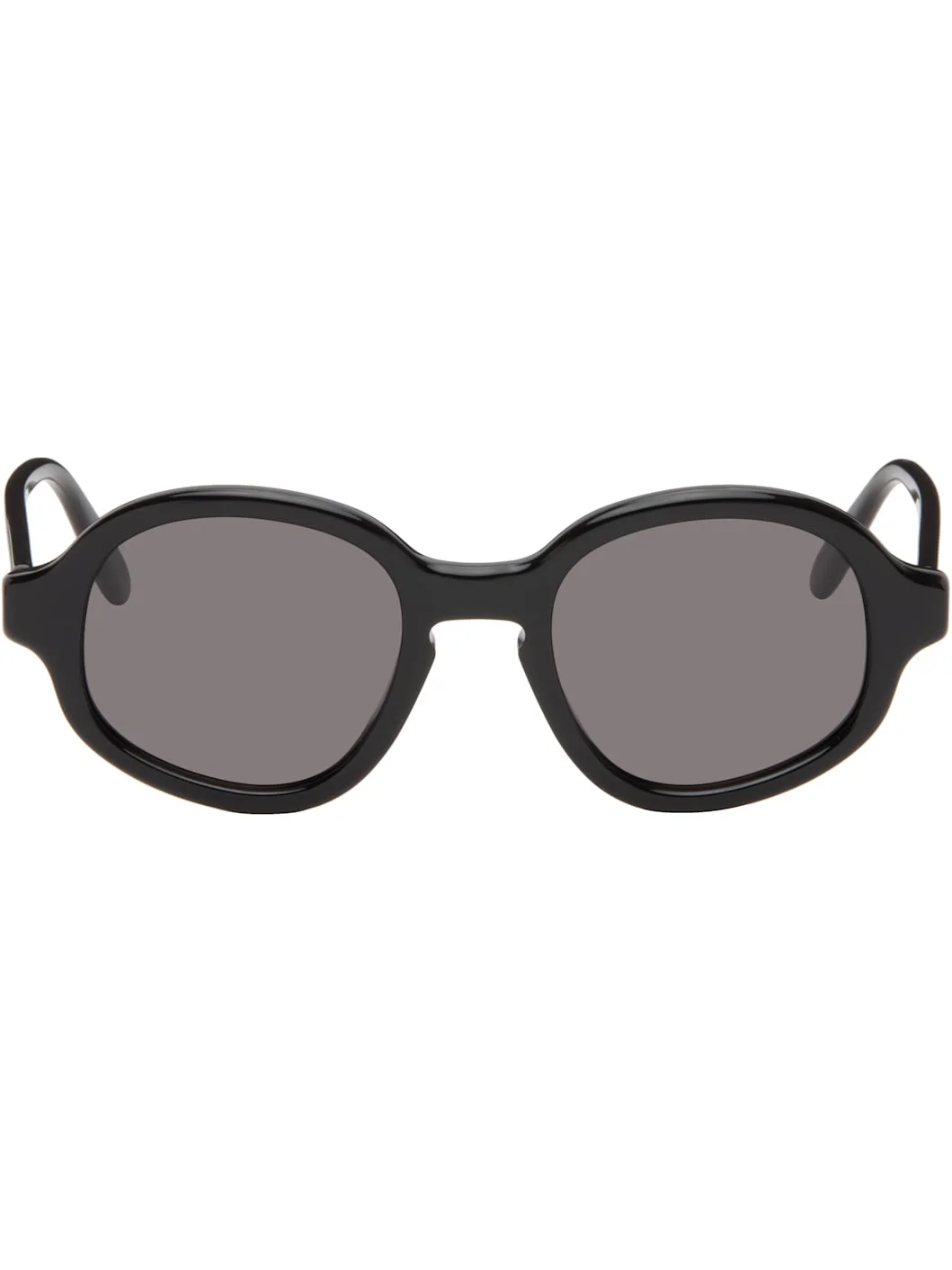 Round acetate-frame sunglasses. · Gray lenses · 100% UVA/UVB protection, category 3 · Keyhole bridge · Integrated nose pads · Inset logo hardware at temples · Includes pouch · Size: 50.21 140 Supplier color: Black Acetate. Made in Italy 261677F005014