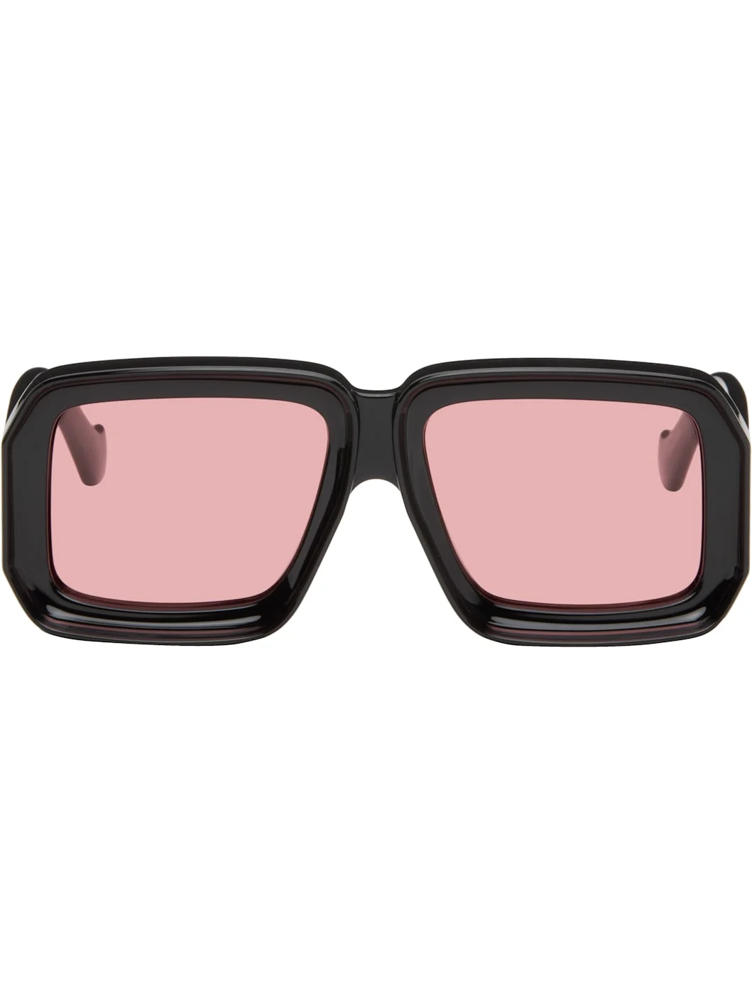 Square acetate-frame sunglasses. · Red lenses · UVA/UVB protection, category 1 · Integrated nose pads · Logo etched at temples · Logo graphic etched at temple tips · Includes pouch · Size: 56.17 145 Part of the Loewe Paula's Ibiza capsule collection. Supplier color: Shiny Black Acetate. Made in Italy 261677F005030