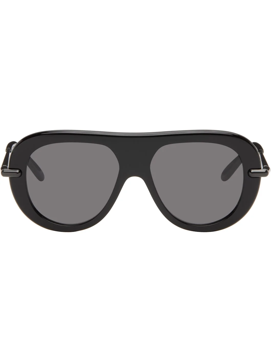 Aviator-style acetate-frame sunglasses. · Gray lenses · 100% UVA/UVB protection · Integrated nose pads · Logo engraved at temples · Includes pouch · Size: 52.15 140 Supplier color: Black Acetate. Made in Italy 261677F005006