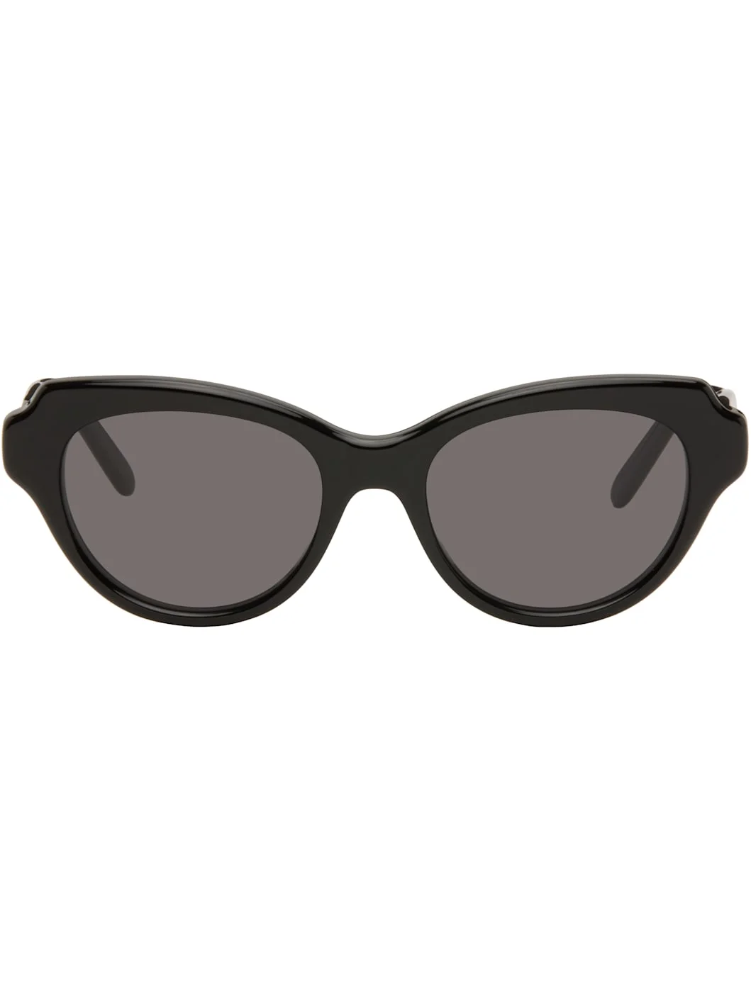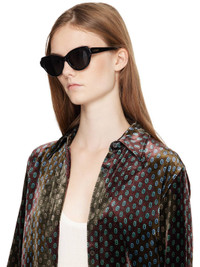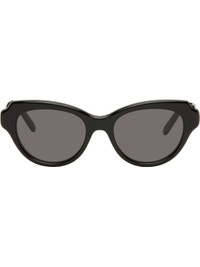 Cat-eye acetate-frame sunglasses. · Gray lenses · 100% UVA/UVB protection, category 3 · Integrated nose pads · Logo stamp at temples · Includes pouch · Size: 54.20 140 Supplier color: Shiny black Acetate. Made in Italy 252677F005080