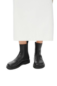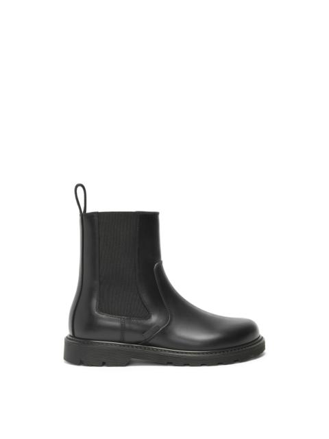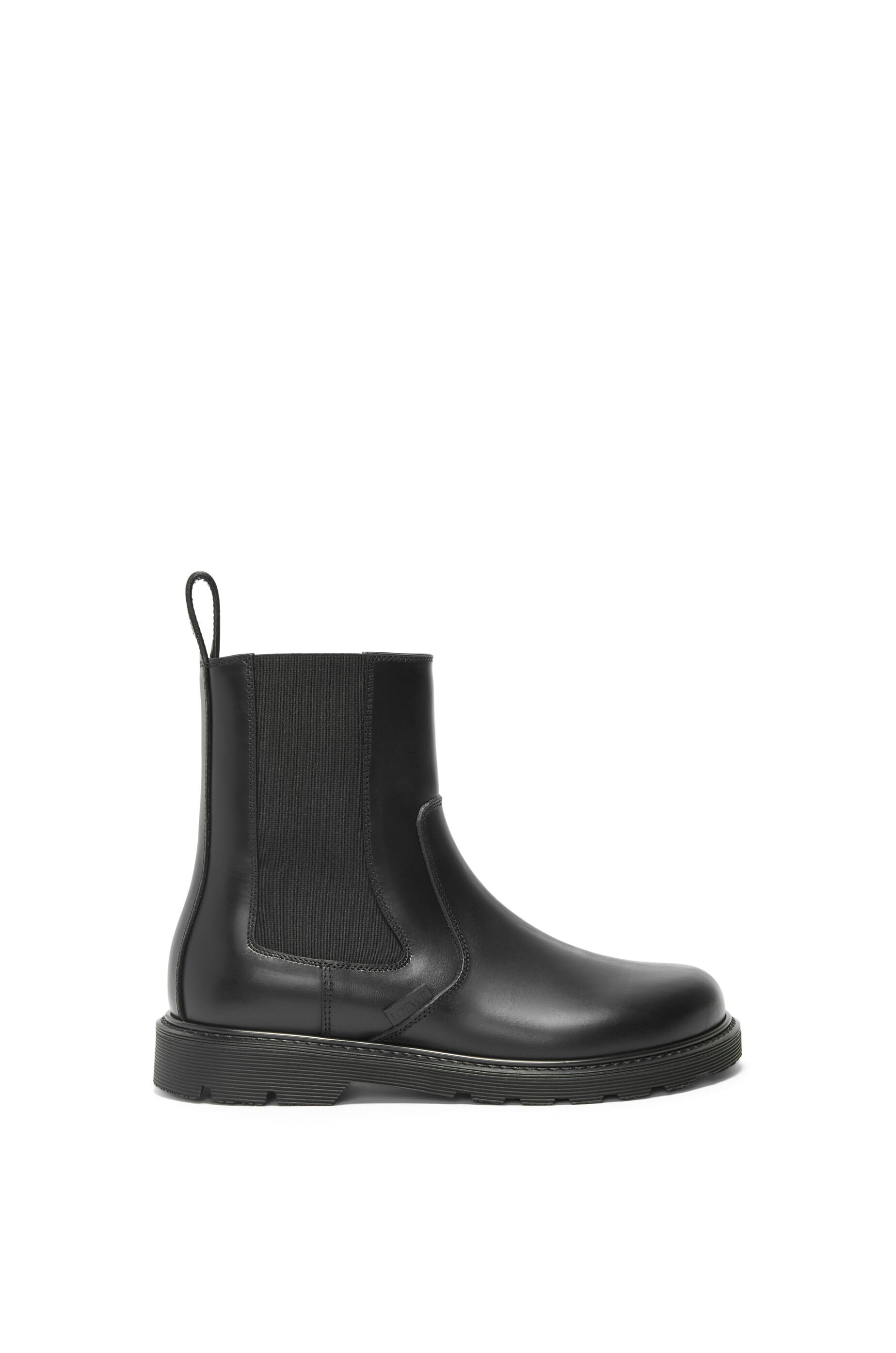 Classic chelsea boot upper crafted in pull-up calfskin, featuring a rounded toe shape and a chunky rubber outsole. - LOEWE label placed at the side - Fits small to size: we recommend buying at least ½ size up. Details - Colour : Black - Main material : Pull-up Calfskin - Heel height : 3 - Weight : 1.06 kg - Model ID : LLSBS05X01 - Made in : Italy