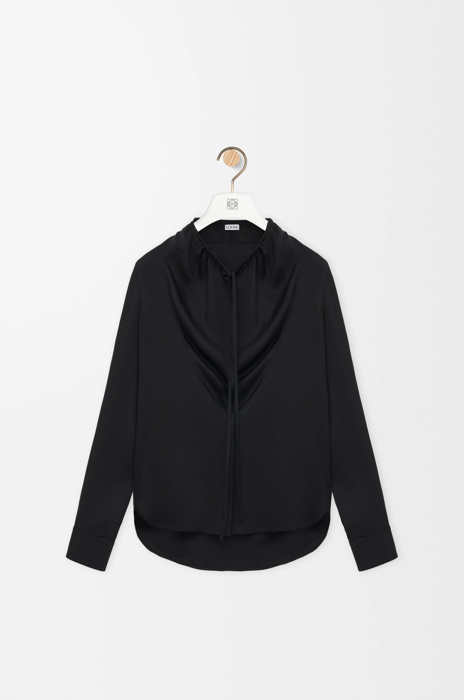Blouse in lightweight washed silk satin featuring an adjustable neckline with drawstring. - Relaxed fit, regular length - Concealed button front fastening, buttoned cuffs - Anagram embroidery placed at the back Colour: Black Main material: Silk Weight: 0.18 kg Made in: Italy Materials & care Main Material: 100% silk