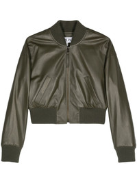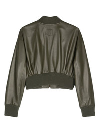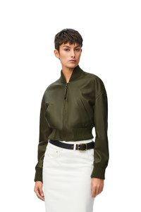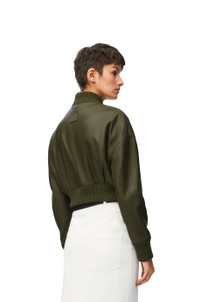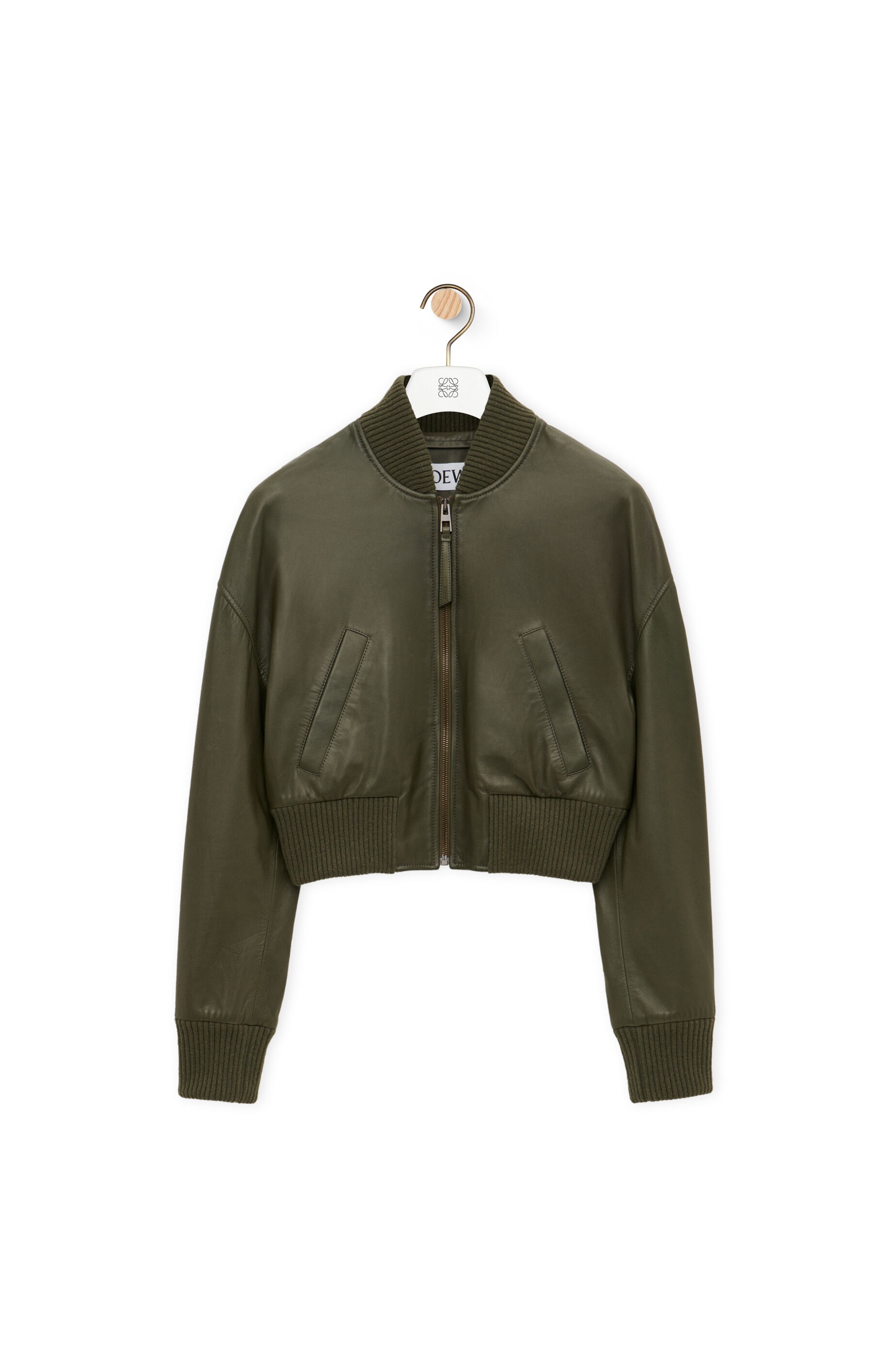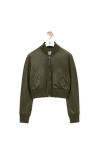 Jacket crafted in lightweight satin drapey nappa lambskin. - Regular fit - Cropped length - Rib knit collar, cuffs and hem - Zip front fastening - Diagonal welt pockets - Fully lined - LOEWE Anagram embossed leather patch placed at the back Details - Colour : Khaki Green - Main material : Nappa - Weight : 0.5 kg - Model ID : S359Y34L26 - Made in : Italy