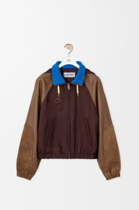 Jacket in lightweight nylon and nappa lambskin inspired by the Ballet runner featuring a high collar with a drawstring and contrast rib knit on the inside, a packable hood and suede patches on the sleeves. - Regular fit, regular length - Zip front fastening - Elasticated cuffs - Welt pockets - Elasticated hem with drawstring - Fully lined - LOEWE leather L placed on the chest Colour: Brown Main material: Nappa/suede/polyamide Weight: 0.8 kg Made in: Italy Materials & care Main Material: 100% polyamide