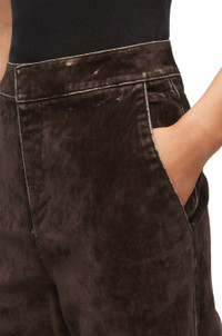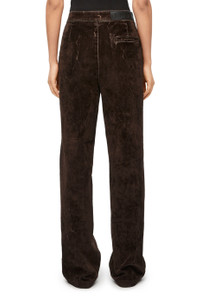 Jeans crafted in lightweight flocked velvet denim. Each piece is individually overdyed, stonewashed, and distressed to create visual textures. - Relaxed fit - Regular length - Mid waist - Bootleg - Concealed zip fastening - Slash pockets - Rear welt pocket - LOEWE embossed leather patch at the back - Runway looks 18 and 35 Details - Colour: Coffee Bean - Main material: Cotton/Elastan - Weight: 0.8 kg - Model ID: S540Y11X45 - Made in: Italy
