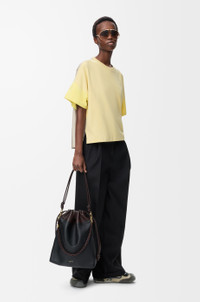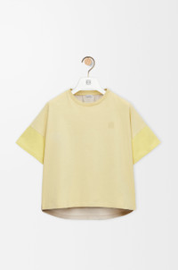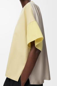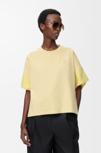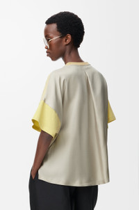 T-shirt in lightweight cotton jersey with a silk twill back featuring a boxy silhouette and contrast sleeves. - Relaxed fit, regular length - Crew neck - Contrast topstitching - Box pleat at the back - Anagram embroidery placed on the chest Colour: Pale Grey/Light Citrine Main material: Cotton Weight: 0.1 kg Made in: Portugal Materials & care Main Material: 100% cotton