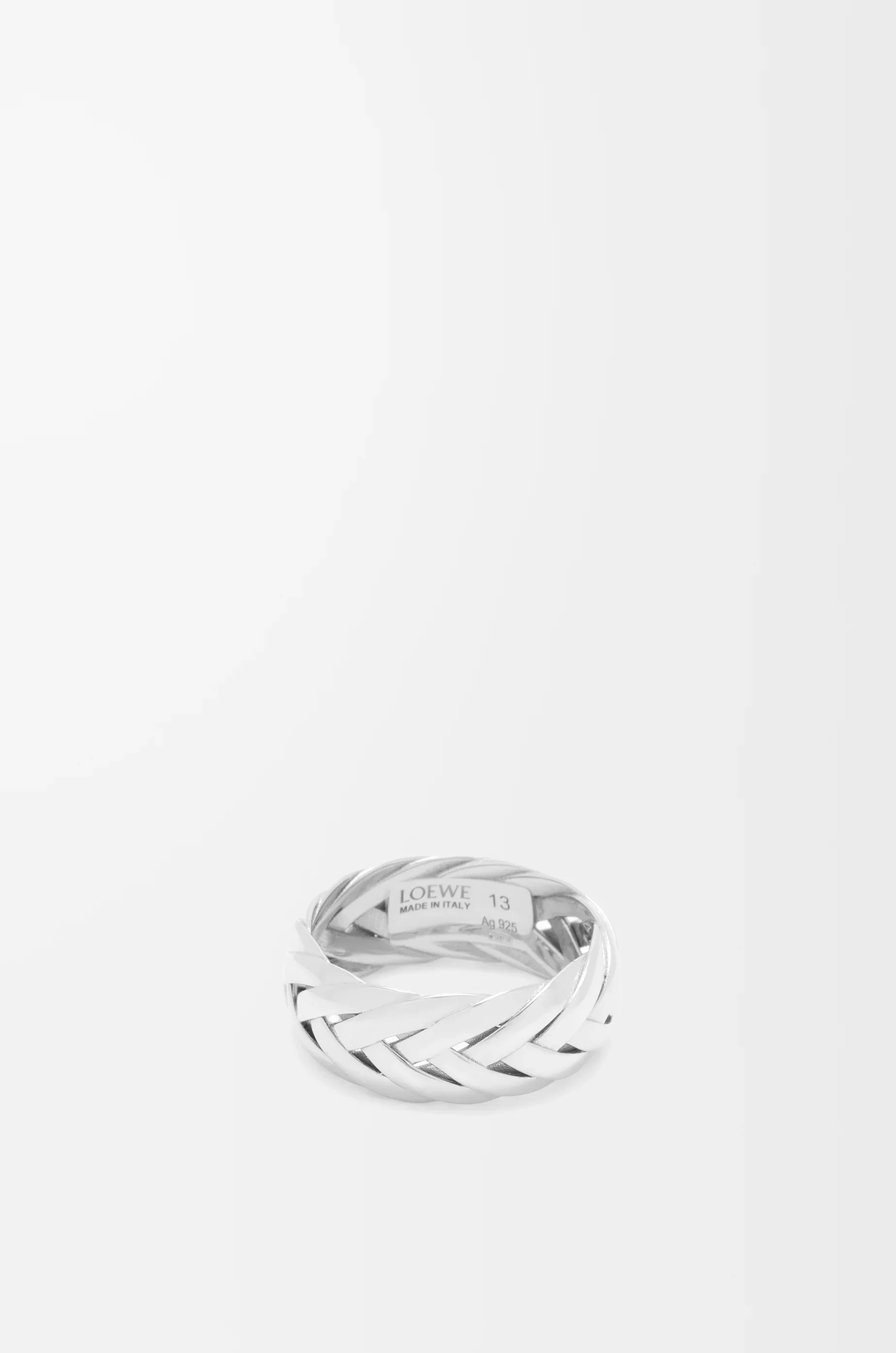 Braided ring in sterling silver inspired by woven leather. - Engraved with LOEWE Details - Colour : Silver - Metallic colour : Silver - Main material : Sterling Silver - Weight : 0.0048 kg - Model ID : J000305X09 - Made in : Italy