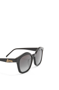 Browline sunglasses in acetate with a LOEWE signature on the arm. - Universal fit - 100% UVA/UVB protection Details - Frame colour: Shiny Black - Lens colour: Gradient Smoke - Colour: Shiny Black - Main material: Acetate - UV filter: 2 - Transmittance: 22% - Weight: 0.039 kg - Height (cm): 5.08 - Height (inch): 2 - Lens size (cm): 5.5 - Lens size (inches): 2.2 - Bridge size (cm): 1.9 - Bridge size (inches): 0.7 - Temple size (cm): 14 - Temple size (inches): 5.5 - Model ID: G832270X04 - CIL: 0010636389 - Made in: Italy