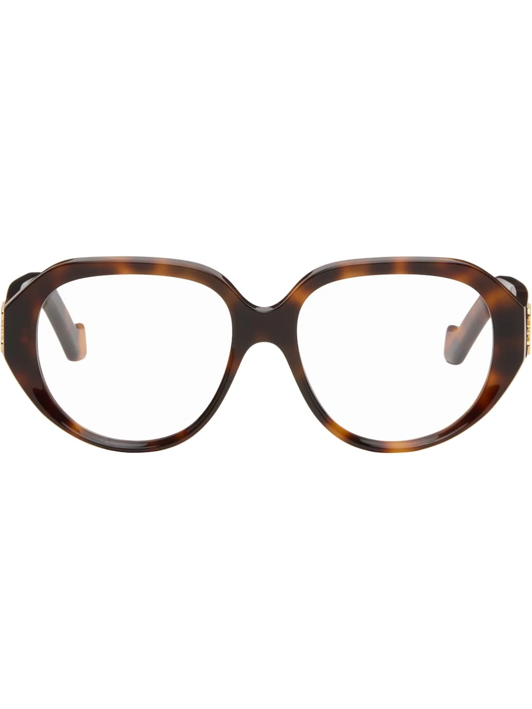 Round tortoiseshell acetate-frame sunglasses. · Integrated nose pads · Logo hardware at temples · Exposed core wires · Includes pouch · Size: 54.16 140 Supplier color: Dark Havana Acetate. Made in Italy 252677F004083