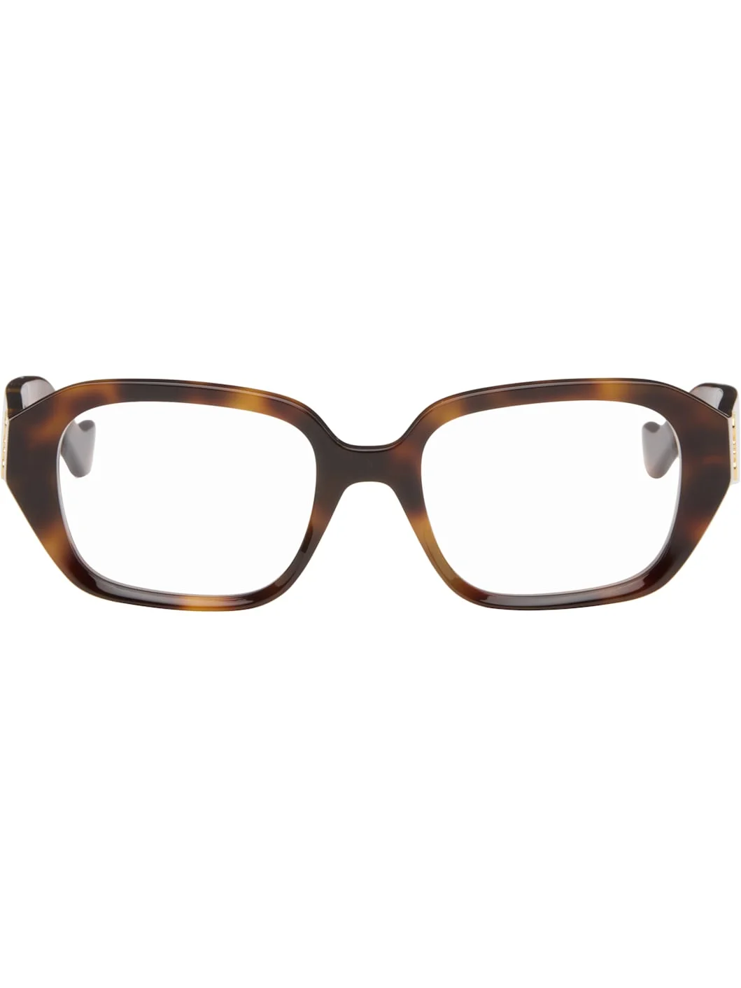 Rectangular tortoiseshell acetate-frame optical glasses. · Integrated nose pads · Logo hardware at temples · Exposed core wires · Includes case · Size: 51.19 140 Supplier color: Dark Havana Acetate. Made in Italy 261677F004007
